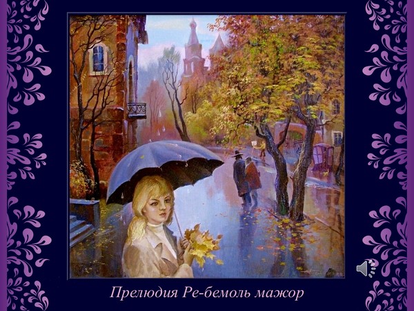 Прелюдия Ре-бемоль мажор № 15 - самая знаменитая из всего цикла, которую называют «Дождливой» (характерный аккомпанемент построен на многократном повторении одного и того же звука).