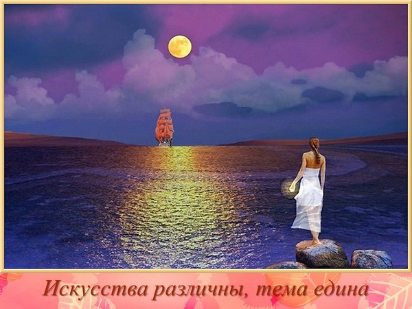 Искусства различны, тема едина. Таким образом, тема - это то, что присутствует во всех видах искусства. Это главная идея, мысль любого творения. Изучая произведения различных видов искусств, которые объединены общей темой, мы учимся глубже понимать их смысл, находим в них схожие образы и настроения.