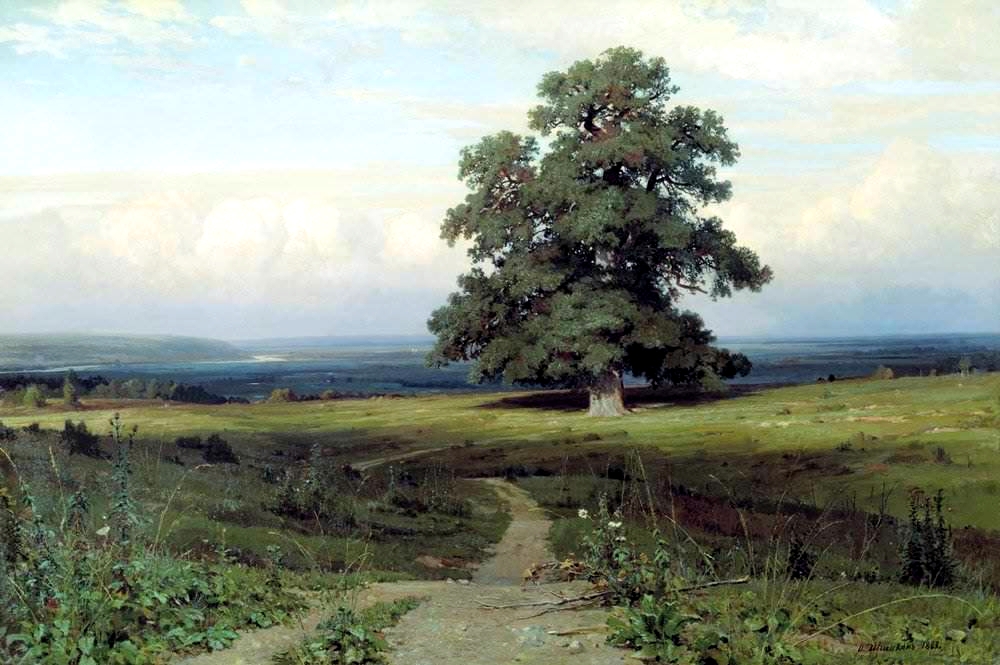 Мелодия песни, написанной на это стихотворение, нетороплива и величава, как народная песня. Русский пейзаж, облик могучего одинокого дерева - излюбленный мотив песенного искусства, выражающего через образ природы характер и силу народа.