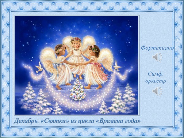Послушайте, как в своей музыке композитор передаёт праздничную, чуть взволнованную атмосферу волшебного праздника, так любимого самим Чайковским (вспомните его «рождественский» балет «Щелкунчик»).