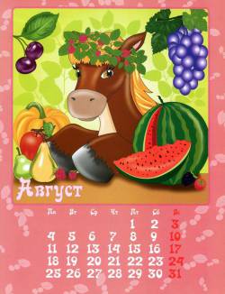 Настенный перекидной календарь на 2014-й год, с забавными рисованными лошадками.