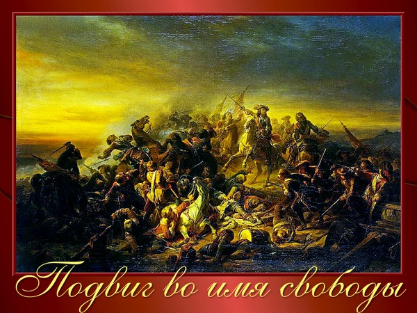 Чу! Слышишь? Как часто эти звуки призывали меня на поле битвы и побед. Как бодро ступали мои соратники по стезе опасной доблести! Теперь и я выхожу из темницы навстречу почётной смерти. Я умираю за свободу. Для неё я жил, за неё боролся, и ей в страданьях я приношу себя в жертву».