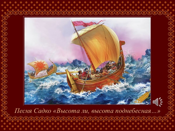 Здравствуй, Окиан-море синее! Прими богатого гостя новгородского, гусляра весёлого с дружиной его храброй!