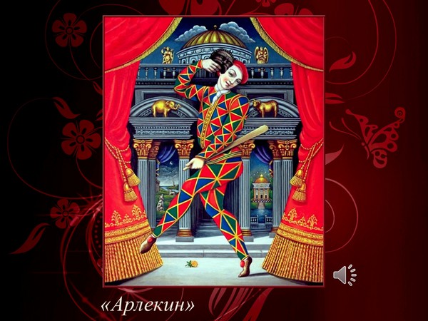 Живая, лёгкая и чуть поддразнивающая музыка. Вот он, насмешник и весельчак Арлекин! Так и видишь перед собой его изящную фигурку в пёстром трико. Сквозь прорези маски блестят лукавые живые глаза. Этот не станет спотыкаться на каждом шагу. Слышите, как озорно взлетает музыка... Несколько лёгких шагов - и взлёт, прыжок. Ещё, ещё... Только что был здесь, и вот его уже нет - стремительно пронеслась вихрем музыка - и закончилась.