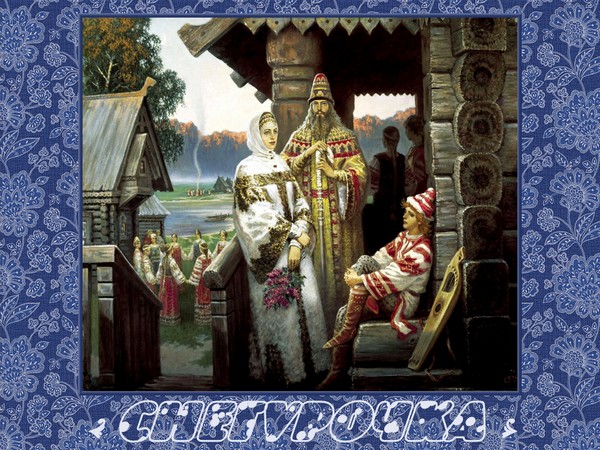Не нарадуются старики на дочку, души в ней не чают. Растёт дочка и умная, и смышлёная, и весёлая. Со всеми ласковая, приветливая. И работа у Снегурочки в руках спорится, а песню запоёт - заслушаешься.