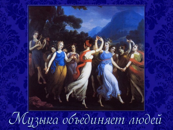 Сила музыки, о которой мы говорили на прошлом уроке, далеко не всегда разрушительна. Гораздо чаще она направлена на созидание. Настоящая музыка окрыляет; человек, переживающий её, становится сильнее и даже как будто выше самого себя. По этому поводу Л. Толстой сказал так: «Она переносит меня в какое-то другое, не своё положение; мне под влиянием музыки кажется, что я чувствую то, что я собственно не чувствую, что я понимаю то, чего я не понимаю, что могу то, чего не могу»...